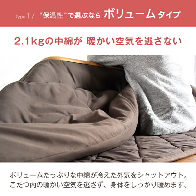 仕様 サイズ【掛布団】200×200cm 【敷布団】190×190cm ※対応こたつサイズ:幅70〜90cm 【スタッフわんちゃんのおすすめポイント】 ・選べる2タイプ!こたつ掛敷布団2点セット ・断熱性に優れたボリュームタイプ ・フランネル×シープ調の肌触りが心地よいボアタイプ ・掛布団はご自宅で洗濯可能なのでいつでも清潔 ・フローリングに敷いても安心の滑り止め付き ・床からの冷気を防ぐウレタン入敷布団 ・お部屋に合わせて選べる4カラー 中綿重量<ボリュームタイプ>約2.1kg <ボアタイプ>約1.25kg 素材 <ボリュームタイプ> 【掛布団】 表地・裏地:ポリエステル100% ※ピーチスキン加工 中綿:ポリエステル綿100% 【敷布団】 表地・裏地:ポリエステル100% 中材:ウレタンフォーム <ボアタイプ> 【掛布団】 表地・裏地:ポリエステル100% 中綿:ポリエステル綿100% 【敷布団】 表地・裏地:ポリエステル100% 中材:ウレタンフォーム カラー<ボリュームタイプ> ブラウン、ネイビー <ボアタイプ> モノネイチャーグレー、モノネイチャーホワイト 梱包サイズ幅60x奥行60x高さ38cm 送料【送料無料(沖縄県・離島は送料別途)】※沖縄県・離島の場合はお問い合わせください。