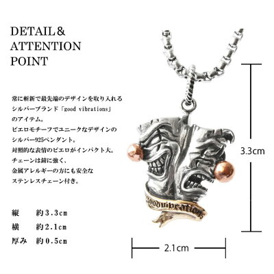 good vibrations グッドバイブレーション シルバーペンダント メンズ/レディース シルバー925 ブラス 真鍮 ブロンズ ピエロ 道化師 チェーン付き シルバー 【ギフト】 【あす楽】 pe323