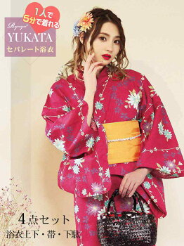 浴衣上下・作り帯・下駄のお得な4点セットのセパレート浴衣は浴衣初心者でも簡単に着れるキャバゆかた♪