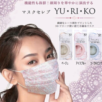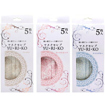 ※3個までゆうパケット送料200円※ 『PFE99% マスクセレブ YU・RI・KO 5枚 個包装 アイスブルー/コーラルピンク/ベージュ』