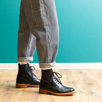 本革 ブローグ カントリーブーツ ウィングチップ ショート ショートブーツ メンズ 靴 紳士靴 紐 レザー グッドイヤーウェルト製法 黒 カジュアル シューズ ドレス フルブローグ カントリー カントリーシューズ ロンドンシューメイク / London Shoe Make【送料無料】