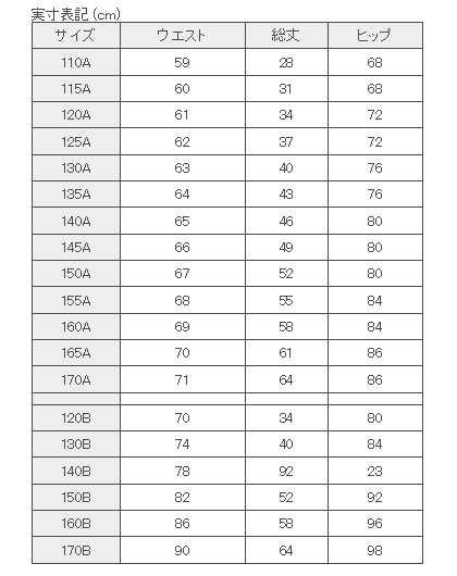 実寸表記 (cm) サイズ ウエスト 総丈 ヒップ 110A 59 28 68 115A 60 31 68 120A 61 34 72 125A 62 37 72 130A 63 40 76 135A 64 43 76 140A 65 46 80 145A 66 49 80 150A 67 52 80 155A 68 55 84 160A 69 58 84 165A 70 61 86 170A 71 64 86 120B 70 34 80 130B 74 40 84 140B 78 92 23 150B 82 52 92 160B 86 58 96 170B 90 64 98ブランド Campusmate キャンパスメイト 商品説明 のびのび、いつもフレッシュに。