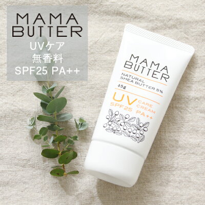 ママバター UVケアクリーム 無香料 45g 家族で使えてしっとり潤うUVケアクリーム無香料 SPF25 PA++ 高保湿クリームタイプ ノンケミカル 生後6か月〜 日常使い スキンケアのサポート 石鹸でオフ 無香料 顔・カラダ用 ママバターのUVケアクリームは、しっとり潤うクリームタイプ。