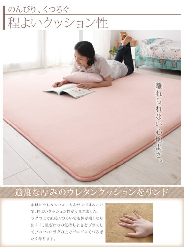 ラグの上で直接くつろいでも体が痛くなりにくく、肌ざわりの気持ちよさとプラスして、ついついラグの上でゴロゴロくつろぎたくなります。