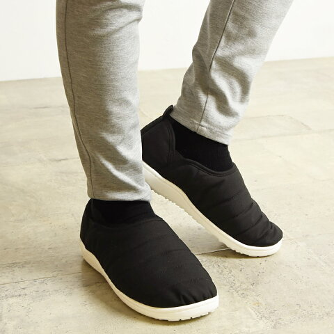 SUBU amp(スブ アンプ) モデルスペック:177cm、66kg 着用カラー:MONO BLACK 着用サイズ:2 内側の起毛が優しく素足を包み込んでくれ、ダウンのような暖かさ。